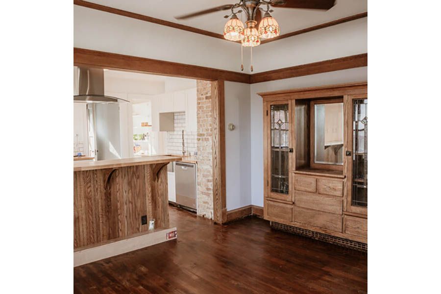 Recently renovated unit retains its turn-of-last-century charm. Hardwood floors throughout. Kitchen has exposed Cream City brick wall and butcher block countertops, with stainless steel appliances and farmer sink. Butcher block dining bar between kitchen and dining room provides eating space without blocking the full-length view from the kitchen to the front windows.